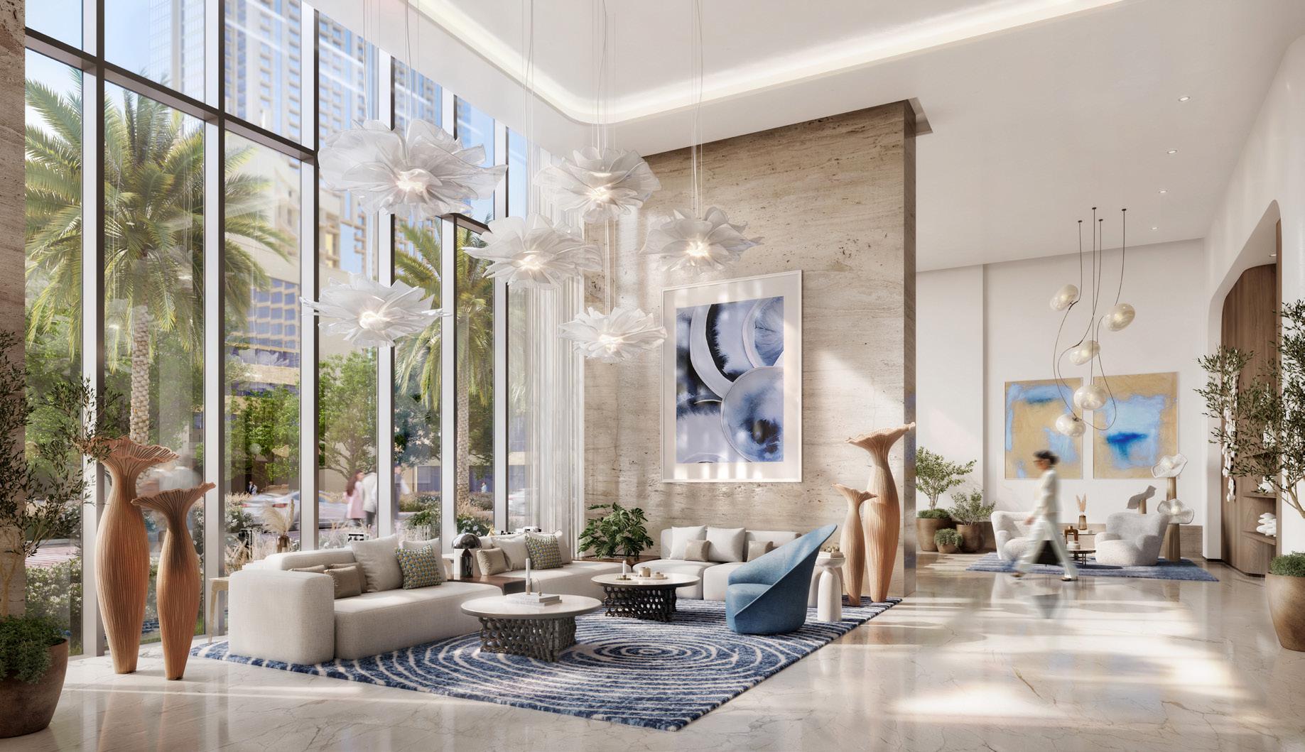 Inside, you'll find a spacious living area with neutral tones and premium flooring, perfect for relaxing or entertaining. The modern kitchen is equipped with high-end appliances, including a built-in oven, microwave, dishwasher, and large refrigerator. Both bedrooms are roomy with built-in wardrobes. The master bedroom has an en-suite bathroom with a rainfall shower and double vanity. The second bedroom is ideal for guests or as a home office, with its own bathroom featuring a shower and bathtub. This apartment combines style and convenience for the perfect living experience.